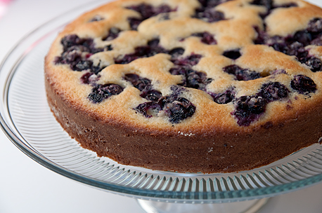 - After 15 minutes, quickly scatter the blueberries on the top of the cake.
